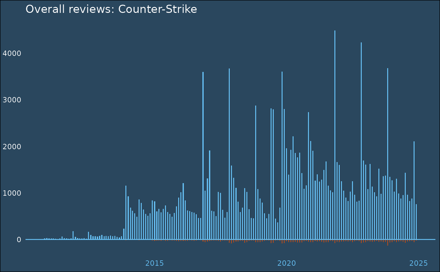 labs(title = "Overall reviews: Counter-Strike", x = NULL, y = NULL) +